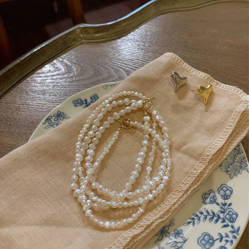 Two-Way Heart Pearl Necklace with OT Clasp – Women’s Elegant Collarbone Jewelry